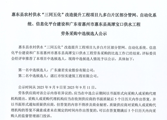 惠州市水電建筑工程有限公司勞務(wù)供應(yīng)商庫擴庫評審結(jié)果公示……
